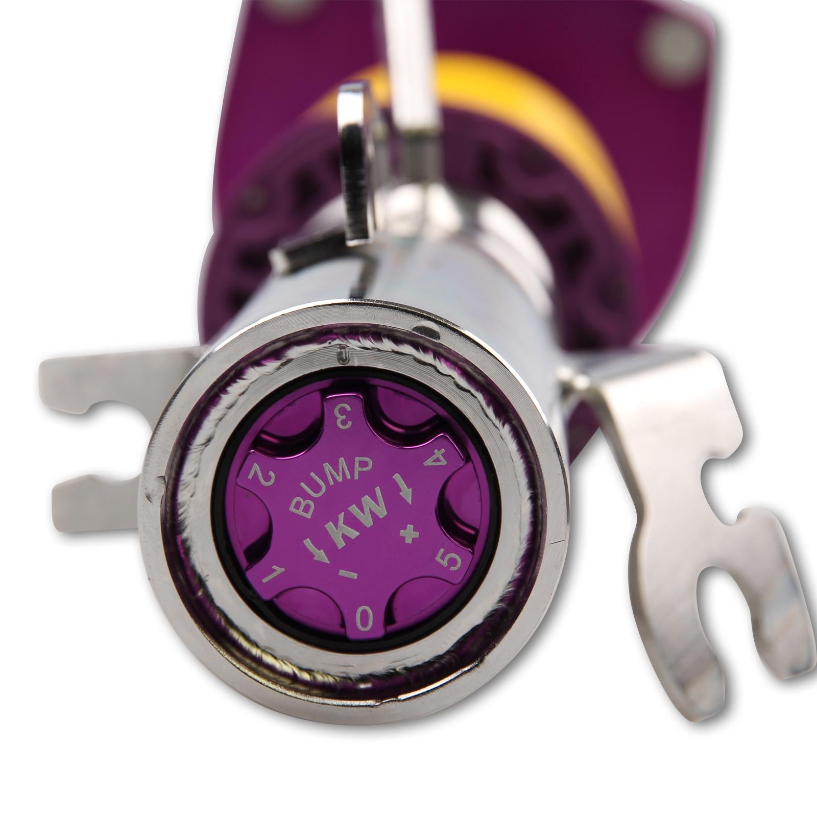 The KW V3 Clubsports and KW V4 Clubsport provides the user numerous adjustment settings. This allows to user to dial the suspension setup to his/hers driving style and to adjust or match the tire/wheel setup of the vehicle.