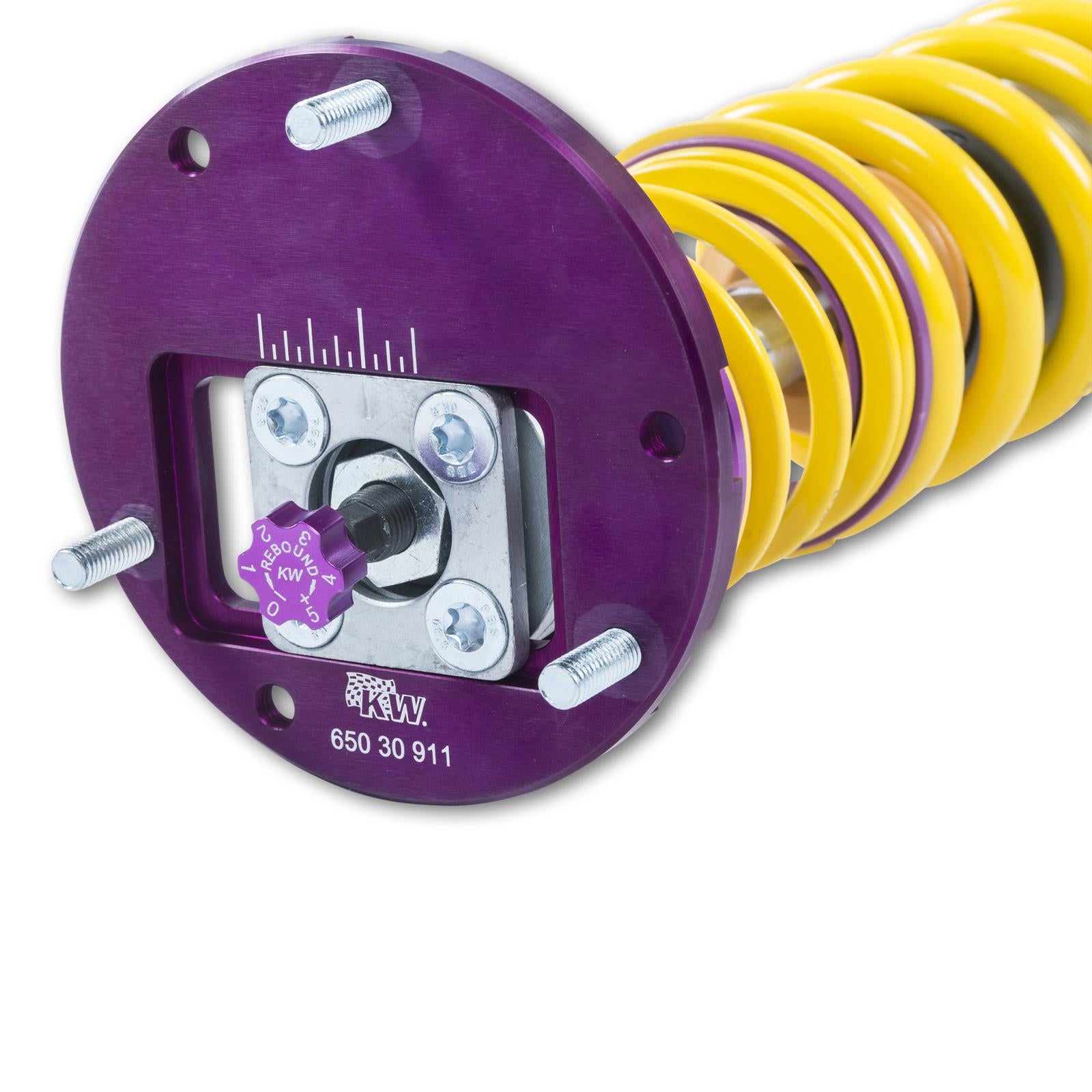 The KW V3 Clubsports and KW V4 Clubsport provides the user numerous adjustment settings. This allows to user to dial the suspension setup to his/hers driving style and to adjust or match the tire/wheel setup of the vehicle.